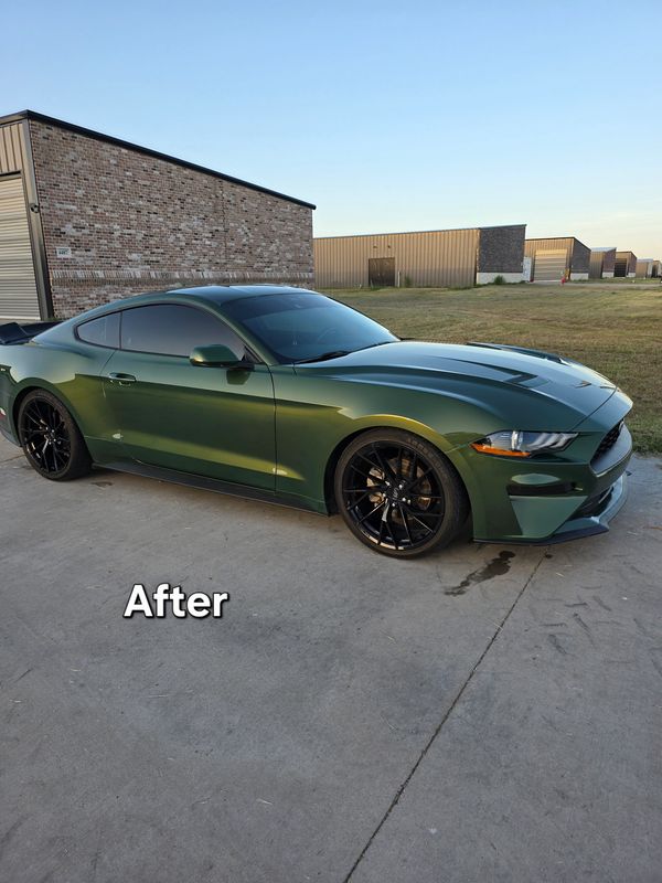 Each vehicle is unique therefore there is no one size fits all when it comes to custom paint. During your consultation we will go over your goals and build a plan that fits perfectly. With this mustang, we scuffed all over, performed some minor body repairs, primed the entire car and painted this beautiful eruption green. The proceeded to lock it in with several coats if clear.
